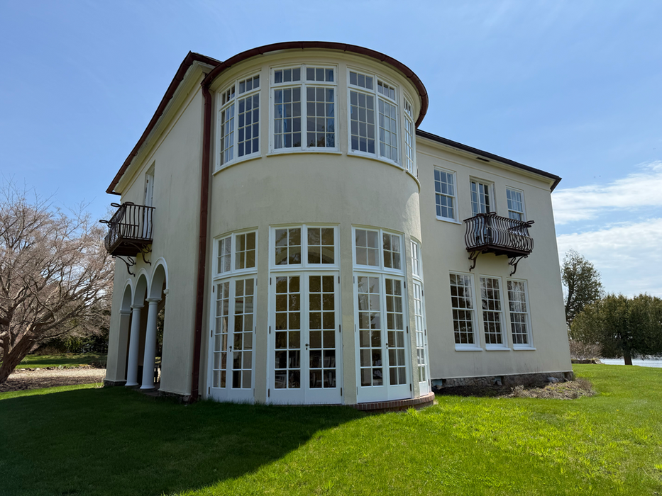 The Grace Cottage, Hermit's Point. This magnificent stuccoed Renaissance Revival cottage built in 1918 designed by noted Philadelphia architect, Wilson Eyre commands unsurpassed views from its 8.8 acre peninsular location and 3,570 feet of shore line. Eight bedrooms, seven fireplaces. Replete with all the requisite amenities for an elegant summer's stay including pool, dock and stone lodge. Enjoy these photos from sunnier times.